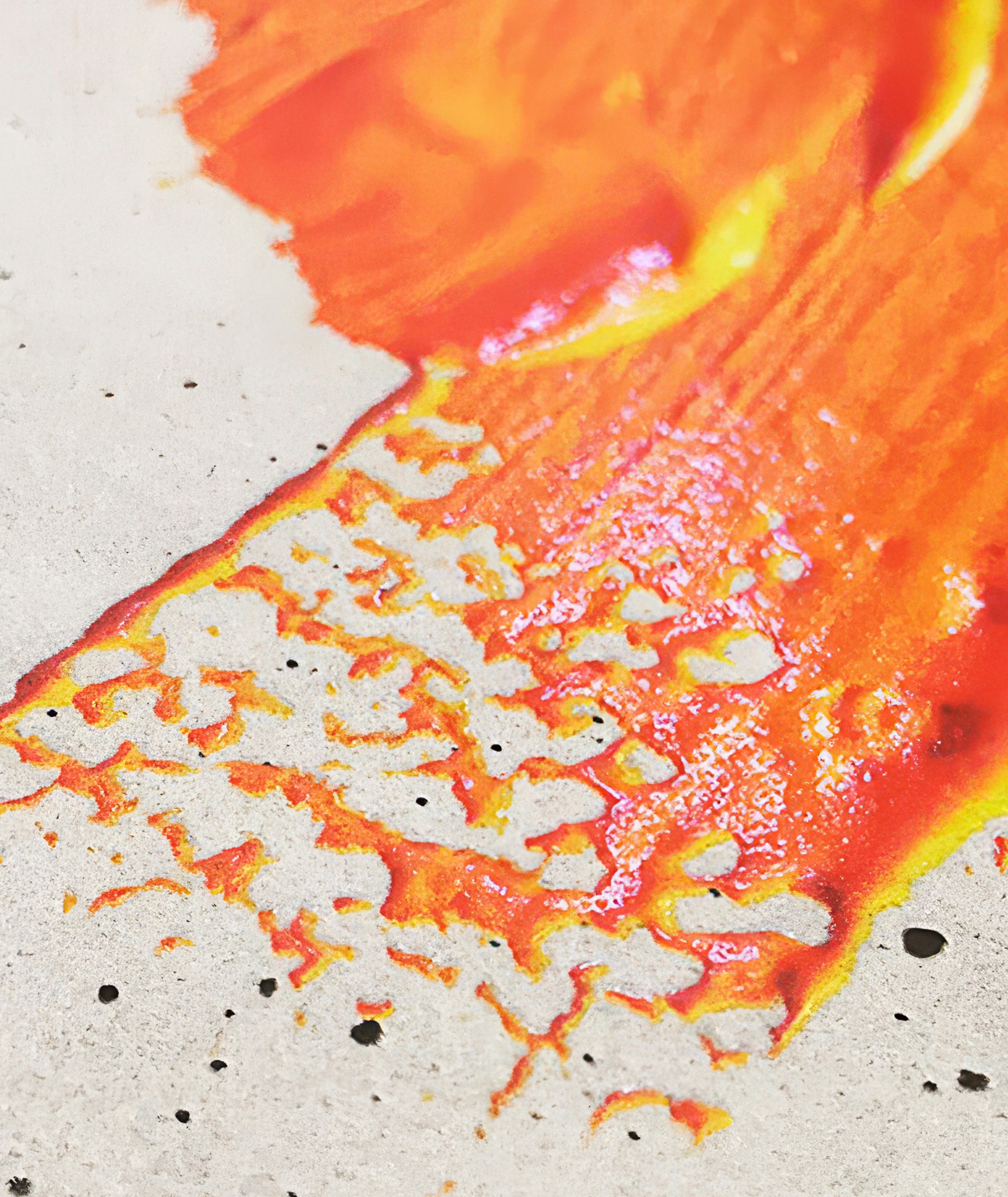 The concrete background was introduced as a contrasting element, highlighting the tactile quality of the paint and evoking the industrial environment where creation begins. The result is a bold yet refined design that celebrates artistry, materiality, and emotion in equal measure.